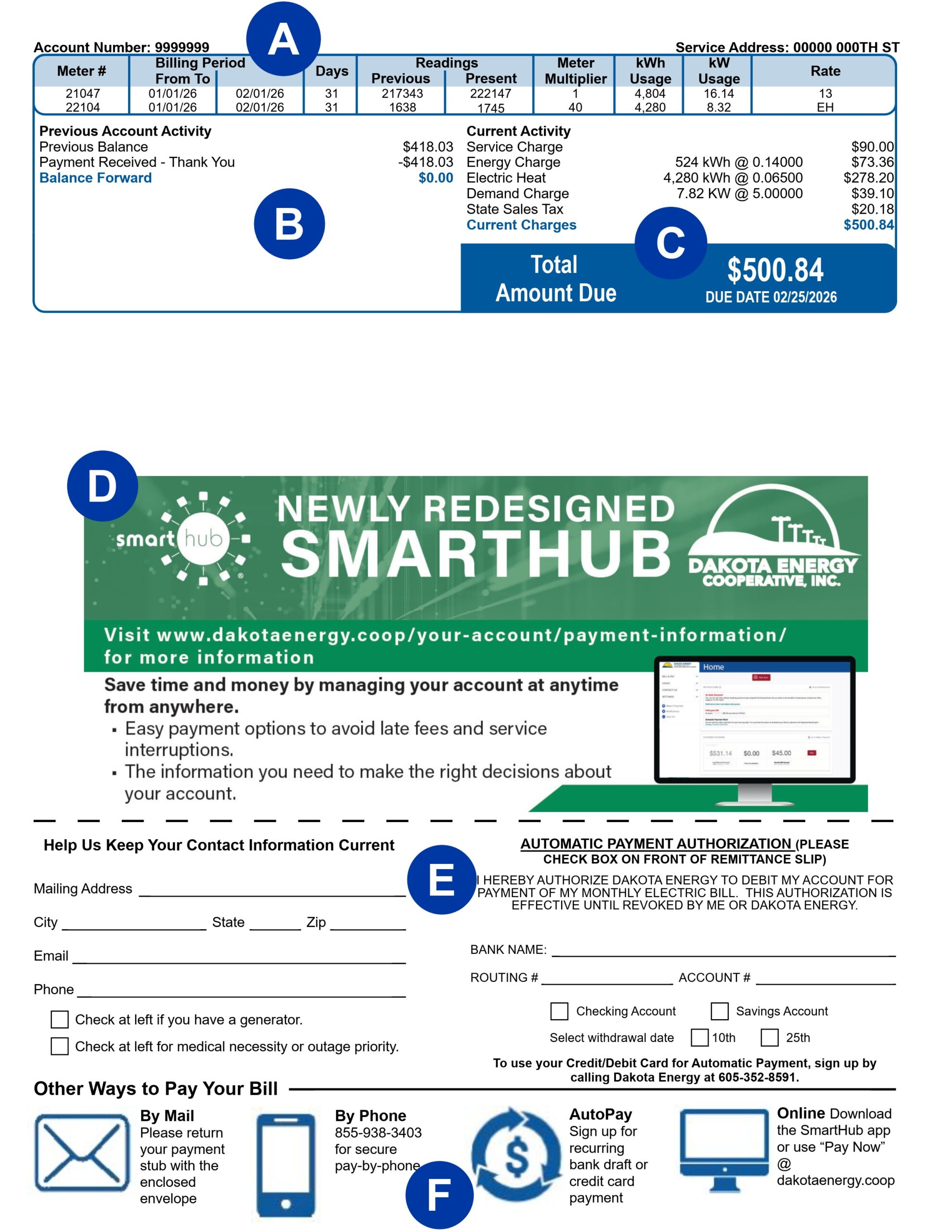Dakota Energy Cooperative assigns rates to electric services based on the type and size of the service and the end-use of electricity.