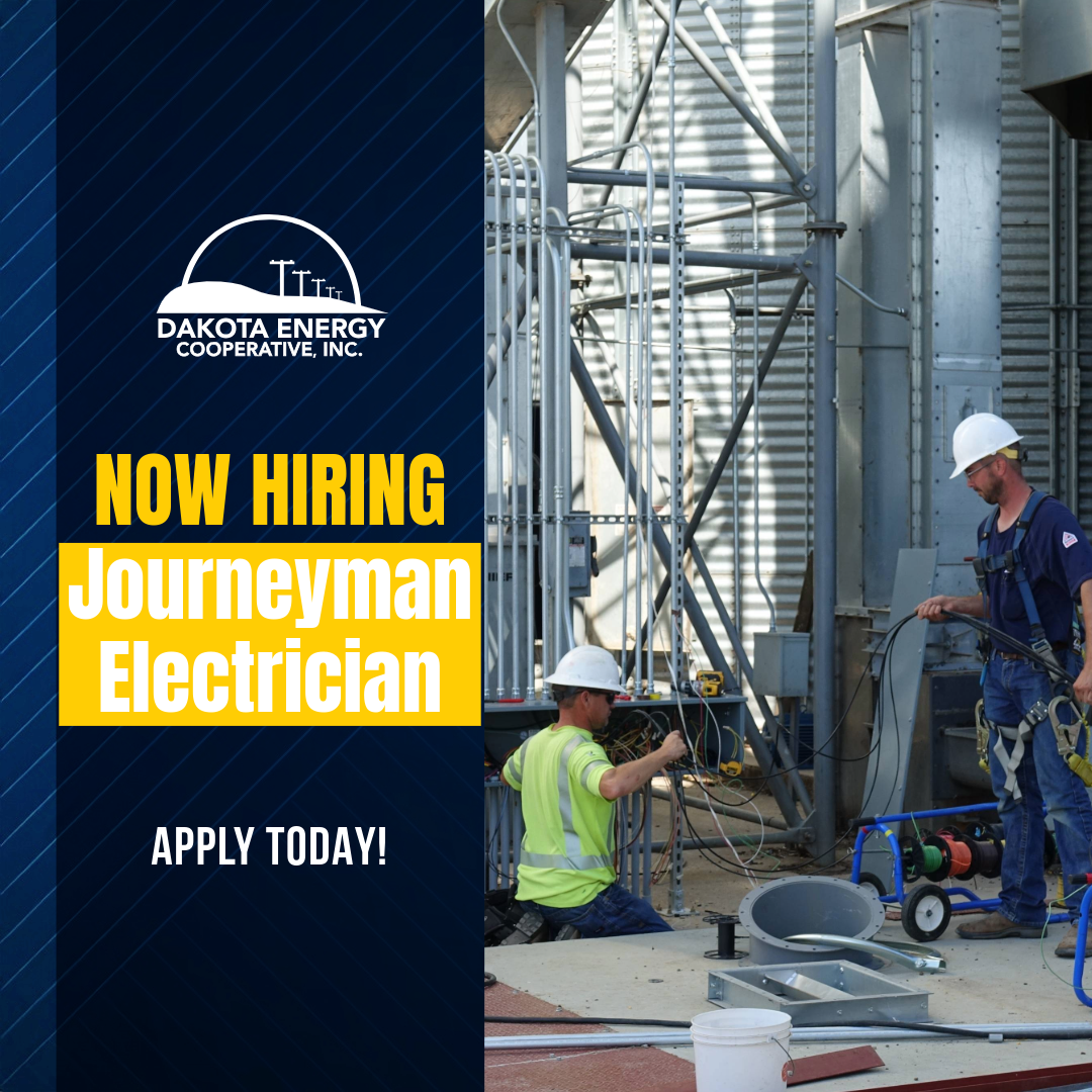 We have an opening for a Journeyman Electrician. Join the Dakota Energy team and enjoy excellent pay, health insurance, and retirement benefits.